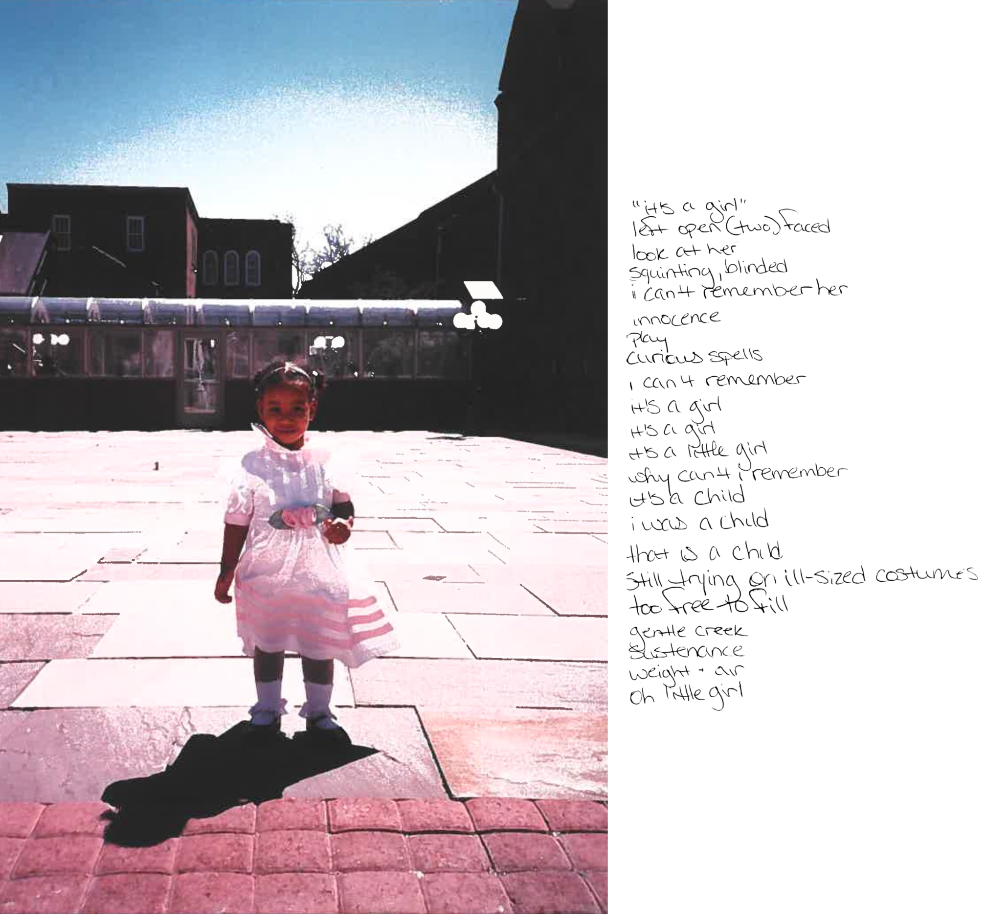 ‘versions’ explores the consequences of generational neglect, familial trauma, and the effects of memory loss - from PTSD - as it relates to searching for meaning in the self. Close to the age of 9, being wistfully withdrawn curdled to aggressive dissociation. It’s deeper than losing your playfulness; curiosity lying open faced in warm ashes of innocence. Dissociation saved my unripe psyche though sludges pathways leading to a higher self. What is left of me is a yearning to fill the gaps.